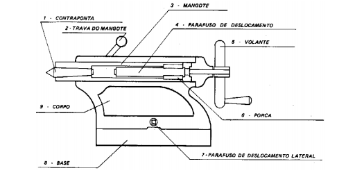 O cabeçote móvel é a parte do torno que, apoiada e fixada sobre o barramento, serve para as seguintes finalidades: