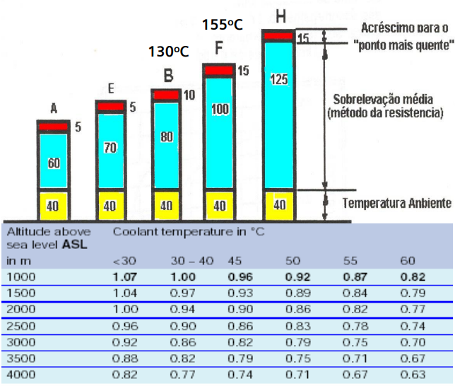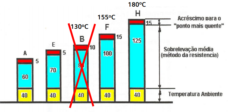 Classe de isolação F, utilização conforme classe B Significa que, em operação nominal, ainda mantém 25oC de folga de temperatura.