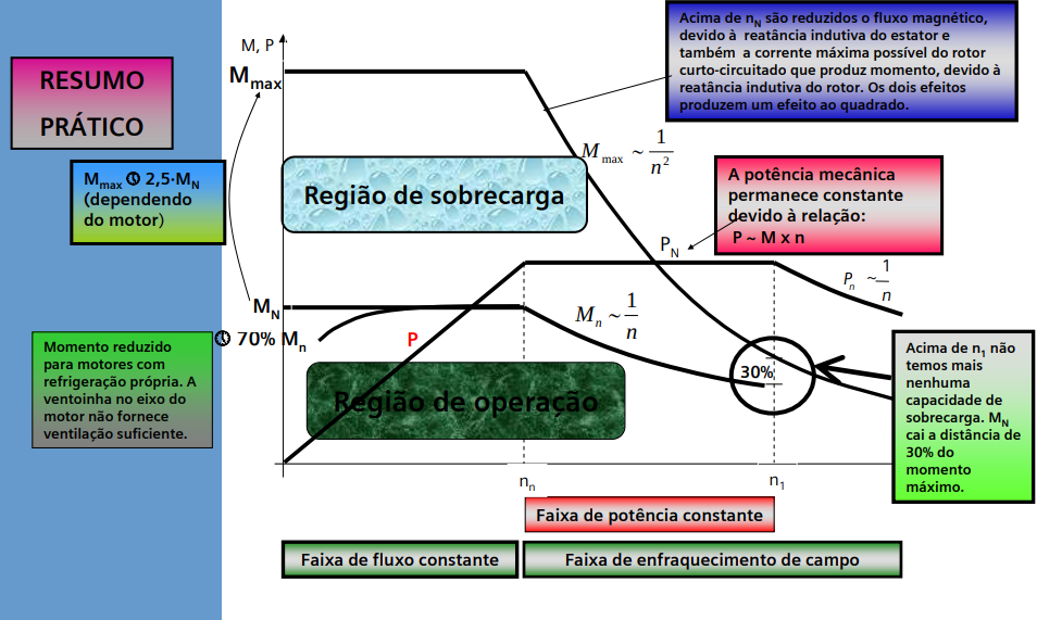 Curvas características, operação com inversor