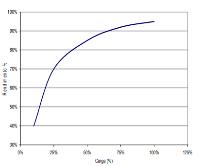 Os rendimentos em carga parcial são muito piores do que a 100% carga.