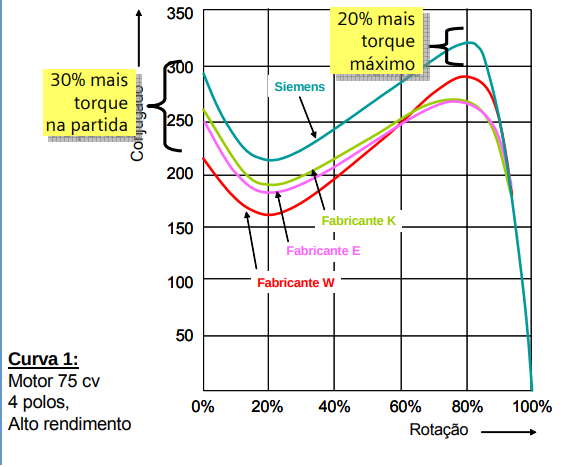 As curvas de rendimento dos motores no Brasil possuem a seguinte forma: