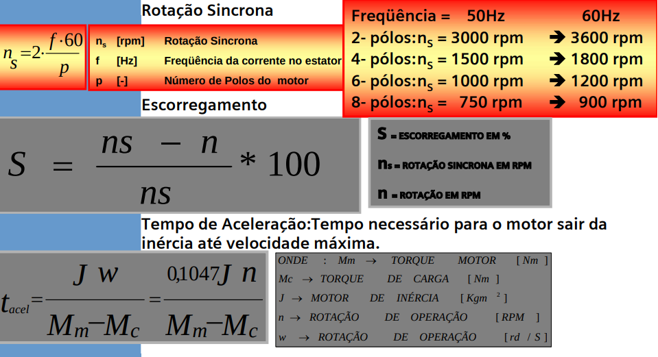 Velocidade Sincrona, Escorregamento e Tempo de Aceleração