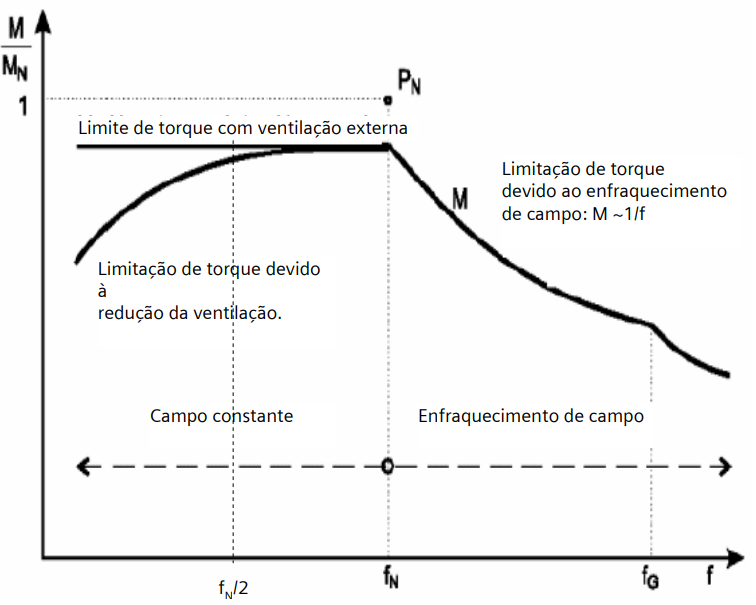 Limitação de torque em baixa rotação Motores da série 1LA8(BT) e 1LA1(MT)