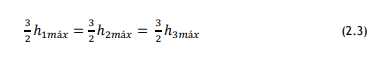 Nos instantes t2 e t3 ocorrem situações semelhantes, mas nesta situação os valores máximos são os de h2 e h3, respectivamente.