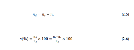 onde é a velocidade de deslizamento da máquina, é a velocidade do campo magnético, é a velocidade do rotor e s o deslizamento.