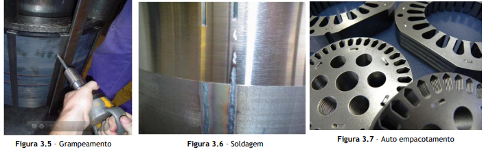Exemplo de estatores em diferentes etapas do processo de fabricação.