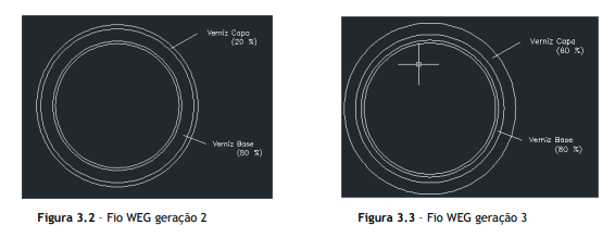 O fio de geração 2 da WEG figura 3.2 é constituído de 80 % de verniz base e 20 % de verniz capa, sendo utilizado em motores de linha normal (standard).
