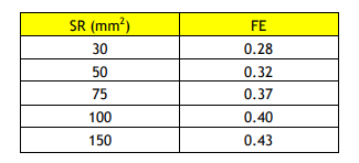 A tabela que se segue fornece algumas orientações para o fator de enchimento em função da área da ranhura: