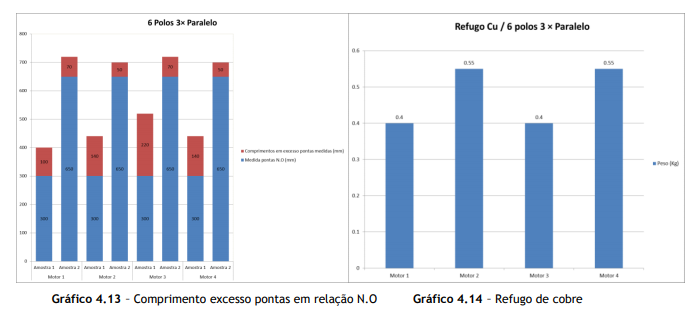 Este tipo de motores é o segundo motor testado que apresenta maior refugo de cobre em peso de cobre cortado. Apesar de não ser do tipo de motores que apresenta as maiores pontas cortadas, apresenta elevado peso de cobre cortado, isto deve-se ao elevado número de ligações que têm de ser feitas.