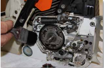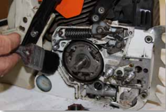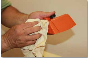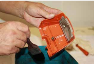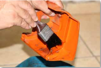 A limpeza é feita com auxílio de um pincel, querosene ou gasolina.