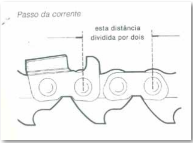 O diâmetro da lima é determinado pelo passo da corrente. Para se obter o passo, medese a distância do centro de um rebite até o centro do terceiro rebite seguinte e divide-se o resultado por 2.