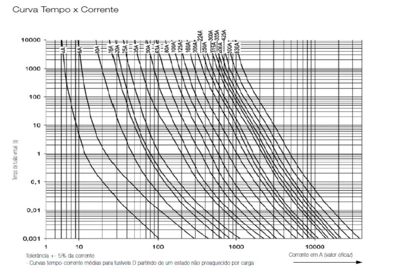 - gL/gG- Fusível para proteção de cabos e uso geral (Atuação para sobrecarga e curto)