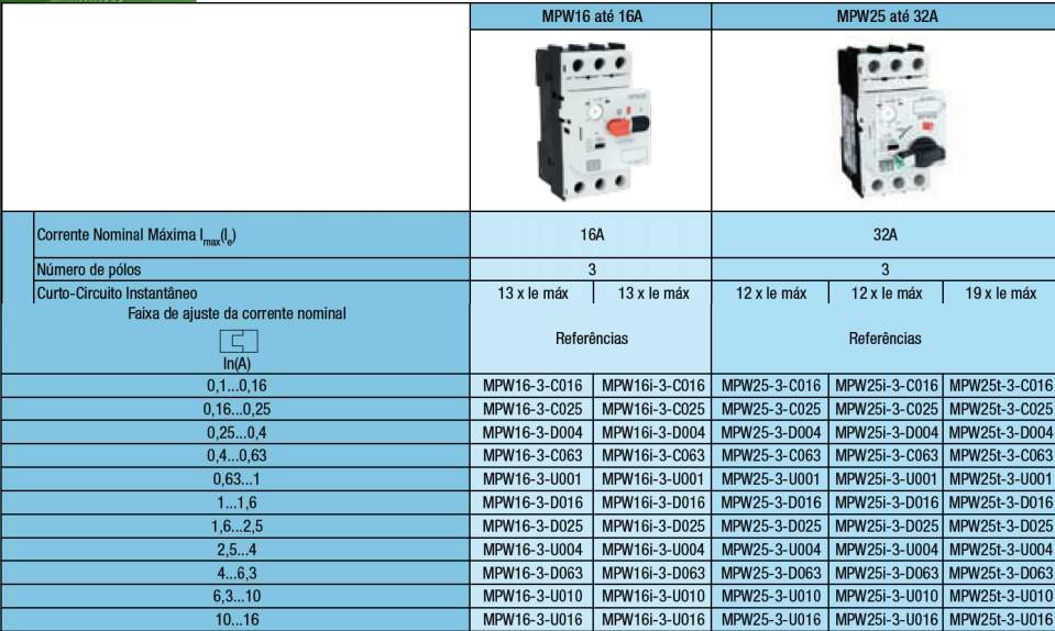 - Disjuntores Motores.