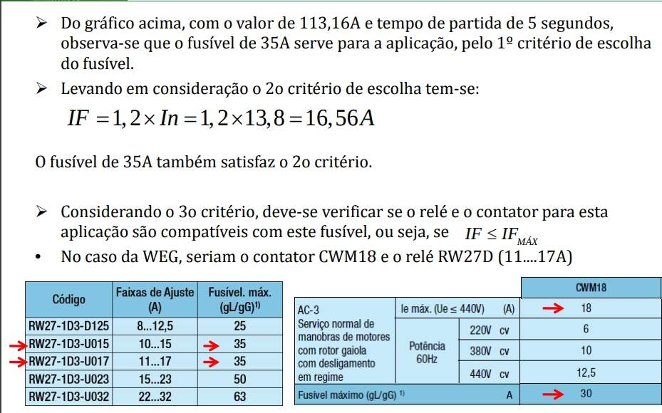 -No dimensionamento de fusíveis, recomenda-se que sejam observados, no mínimo, os seguintes pontos: