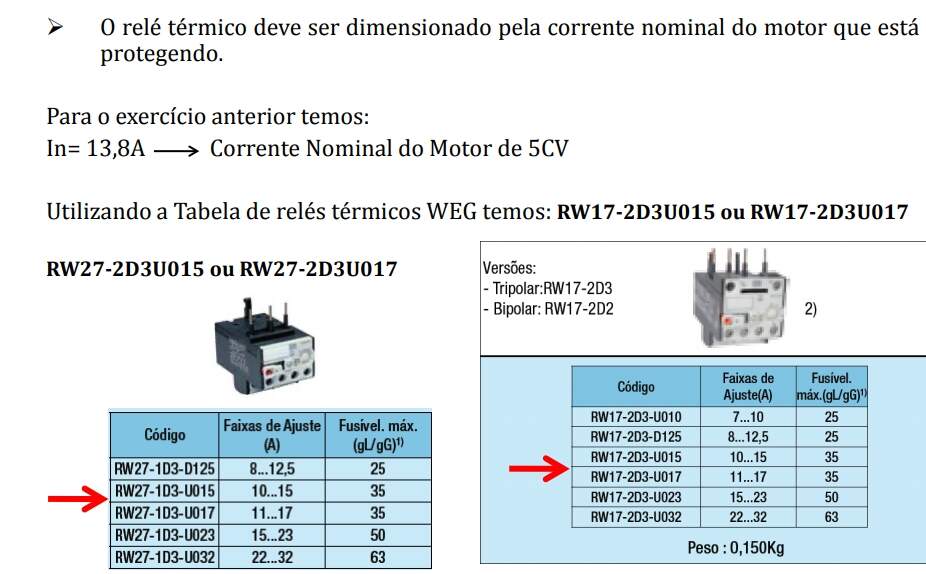 Dimensionamento de Relé Térmico: