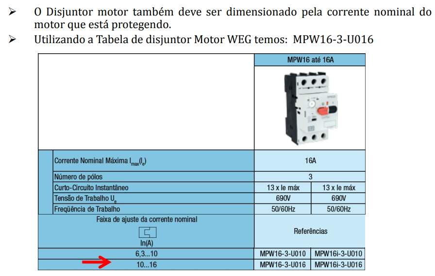 Dimensionamento de Disjuntor Motor: