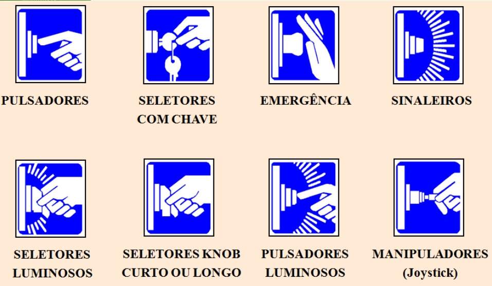 DISPOSITIVOS DE COMANDO, SINALIZAÇÃO E AUXILIARES: