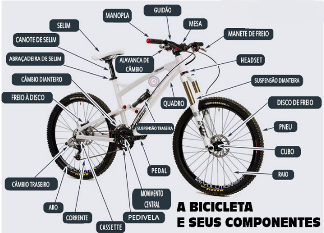 A seguir iremos aprender a identificar as peças de uma bicicleta. Assim irá ficar mais fácil compreender o funcionamento da bike, pesquisar e comprar peças.