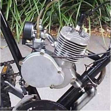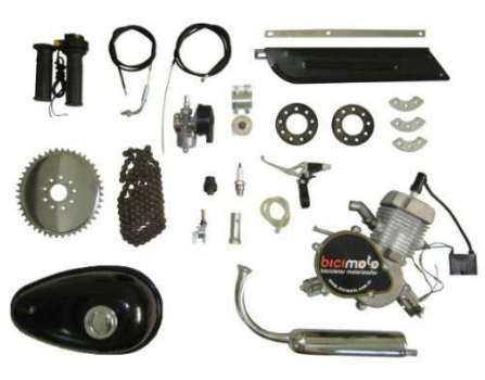 - Motor 2T de 48cc ou 80cc com carburador, filtro de ar e vela de ignição.