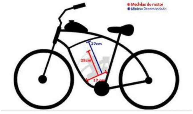 Dimensões necessárias para a instalação dos kits de bicimoto de dois tempos:
