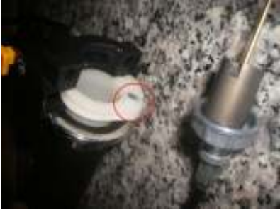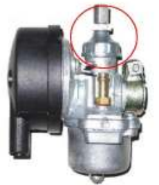 Desatarraxe a tampa superior do carburador a peça marcada em destaque na imagem ao lado.