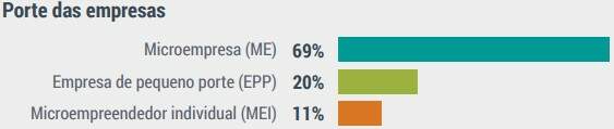 Em relação ao porte das empresas pesquisadas, a maioria delas (69%) está enquadrada no porte de Microempresa.
