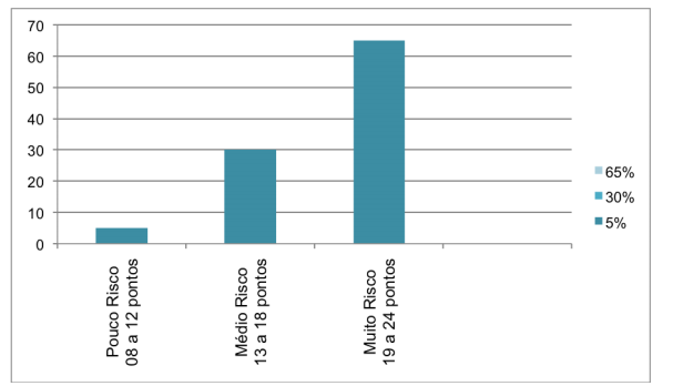 A pontuação conferida a cada paciente pode variar na faixa entre 8 e 24 pontos, tendo em vista que são oito tópicos com variação (multiplicador) de 1 a 3 pontos para cada tópico.