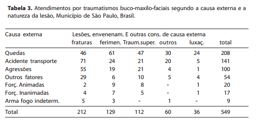 Devido ao aumento das mortes, traumatismos e incapacidades ocorridos por causas externas em toda a América Latina, principalmente nos grandes centros urbanos, o atendimento odontológico hospitalar está cada vez mais voltado para casos originados na violência. A odontologia atende, através de seus serviços de emergência odontológica e traumatologia buco-maxilo-facial, diversos casos dentro desse contexto e prescinde de conhecer melhor essa morbidade, uma vez que não existem estudos com abrangência populacional nessa área.