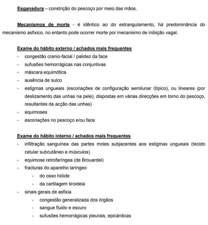 - Esganadura – quase sempre corresponde a uma situação de homicídio.