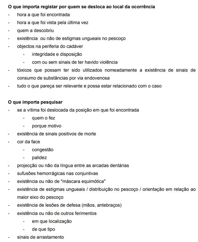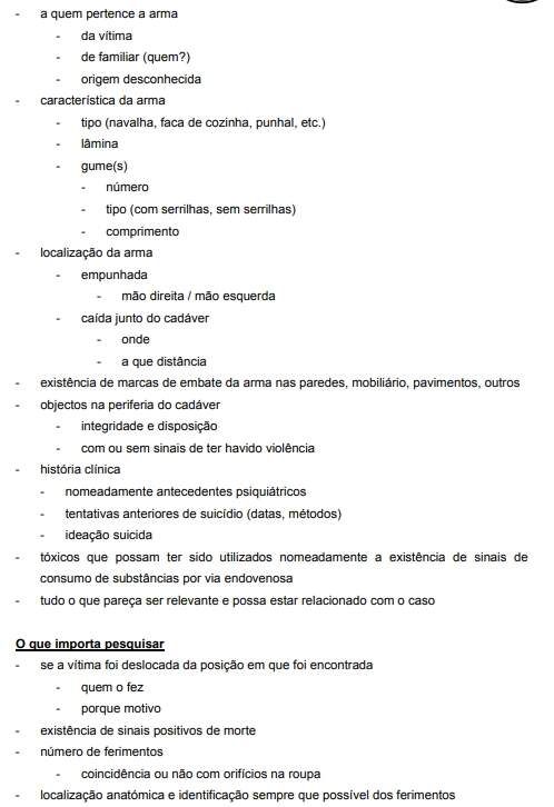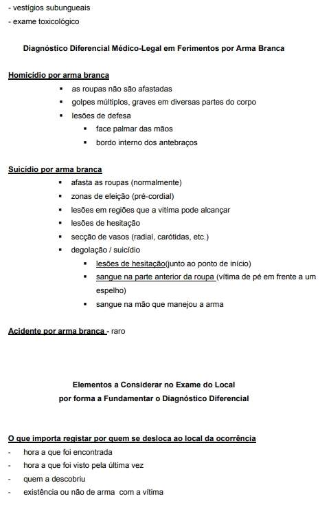 - A diagnóstico diferencial médico-legal (acidente, suicídio, homicídio ou morte de causa natural).