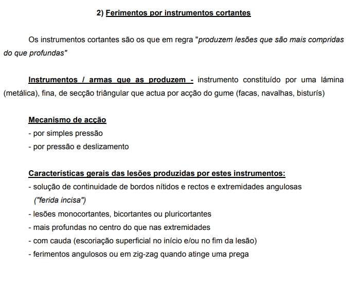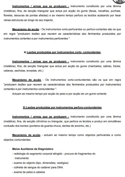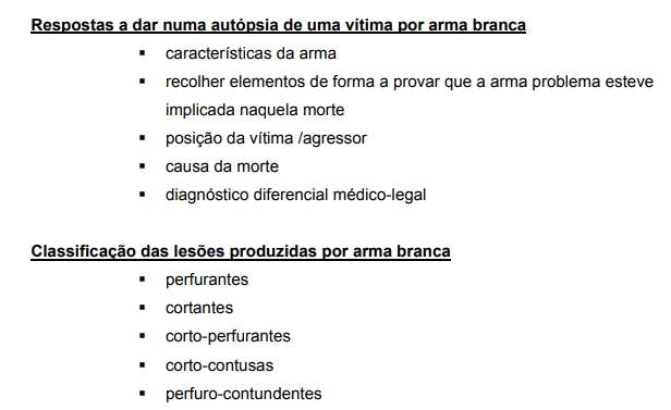 Os instrumentos perfurantes são os que em regra "produzem lesões em que a profundidade é maior do que a extensão superficial".