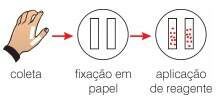 A análise química de chumbo consiste na coleta prévia de amostra das mãos do suspeito, mediante aplicação de tiras de fita adesiva do tipo esparadrapo nas mesmas e subseqüente imobilização dessas tiras em superfície de papel de filtro. As referidas tiras, ao serem borrifadas com solução acidificada de rodizonato de sódio, se apresentarem um espalhamento de pontos de coloração avermelhada, indicam resultado positivo para o disparo. Tal exame é conhecido como residuográfico (Figura 2).