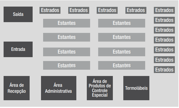 Figura 3 – Modelo de disposição interna de prateleiras e estrados em uma Central de Abastecimento Farmacêutico