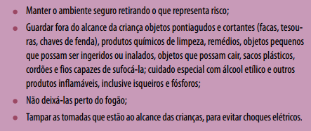 A seguir orientações que devem ser dadas durante a visita domiciliar às famílias onde há crianças.