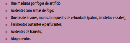 Para evitar queimaduras com fogos de artifício, além da orientação, o ideal é que os adultos não usem para dar o bom exemplo. Para evitar os acidentes com armas de fogo, o melhor é não ter armas em casa, pois sempre se corre o risco delas caírem nas mãos das crianças. Em caso em que isso não puder ser evitado, devem ser guardadas em locais extremamente seguros.