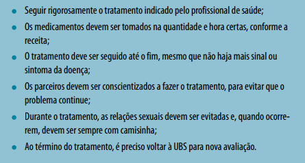 Para um bom resultado durante e após o tratamento, é necessário que algumas orientações sejam seguidas pelos portadores de DST: