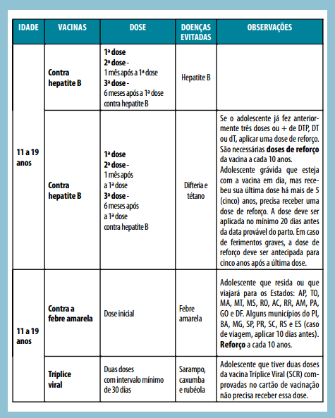 Orientar para procurar a UBS quando o adolescente não tiver a carteira de vacinação ou caderneta de saúde do adolescente e/ou se estiver com o esquema de vacinação incompleto ou atrasado.