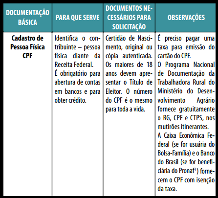Não é possível também ter direito a: fazer matrícula na escola, fundo de garantia por tempo de serviço, aposentadoria, licença-maternidade etc. Não pode participar dos programas sociais como Bolsa-Família, Luz para Todos, entre outros, nem realizar casamento civil, fazer alistamento militar e comprar um imóvel com escritura.