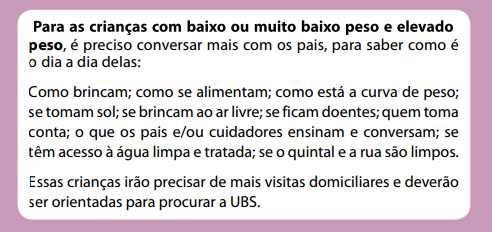 Todos esses bebês precisam ser acompanhados com mais frequência por você e pelos demais profissionais da UBS, pois geralmente precisam de cuidados especiais.