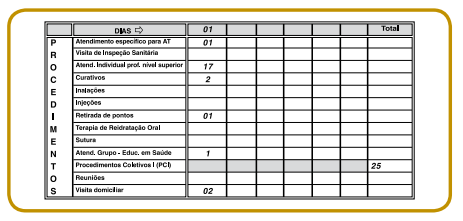 No quadro destinado a informar sobre os “Procedimentos”, você vai registrar nas duas últimas linhas: “Reuniões e Visita Domiciliar”.