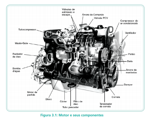São denominados componentes, as partes auxiliares que trabalham em conjunto para o funcionamento do motor. Os principais componentes ou partes fundamentais segundo Mialhe (1980), são responsáveis pelo fornecimento das condições favoráveis para que o processo de transformação da energia química dos combustíveis nos motores se realize de forma eficiente e contínua.
