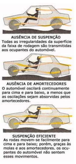 Se o pavimento das faixas de rodagem oferecesse perfeitas condições de rolamento, os automóveis não necessitariam de um sistema complexo de suspensão para proporcionar conforto aos seus ocupantes. Um bom sistema de suspensão deve incluir molejamento e amortecimento. O primeiro consiste na resistência elástica a uma carga e o segundo na capacidade de absorver parte da energia de uma mola após esta ter sido comprimida.