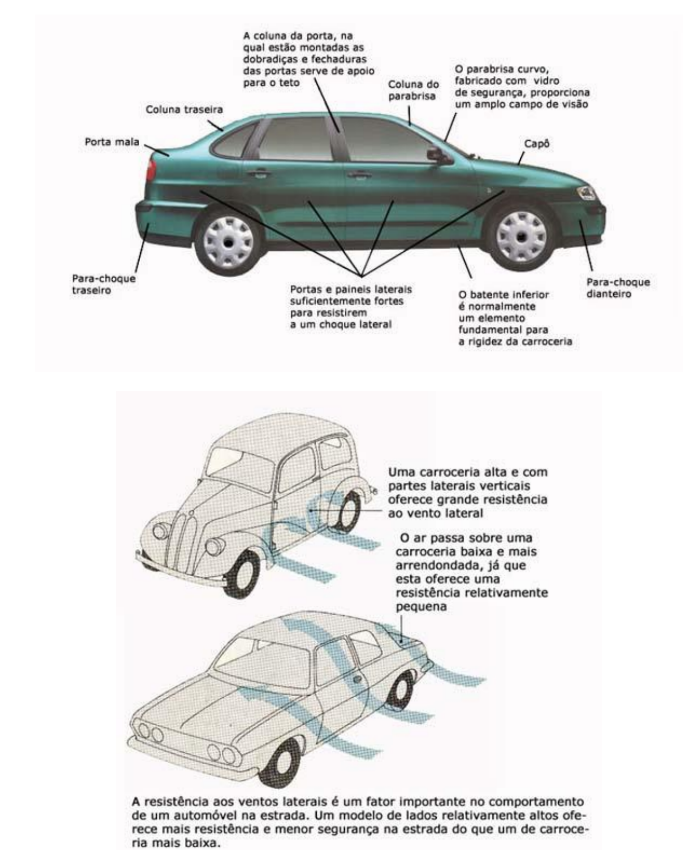 Na sua expressão mais simples um automóvel é uma viga suportada em cada extremidade pôr rodas, pelo que deve ser suficientemente forte para não dobrar na parte central, isto é, ser resistente à flexão. Um automóvel deve também ser resistente aos esforços de torção impostos pelas irregularidades do pavimento sobre o qual roda e a determinadas cargas, tais como o peso do motor, o impulso das molas e pequenos embates, para que uma estrutura seja resistente, sem ser muito pesada, os materiais que a compõe devem ser utilizados com um máximo de eficiência.