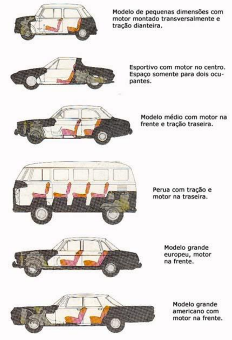 A forma básica da carroceria é a de uma cabina fechada, com duas ou quatro portas e um compartimento para bagagem normalmente atrás.Os pick-ups, com amplo espaço para carga, torna-se cada vez mais popular. O automóvel de cinco portas é uma bem sucedida concepção daquele tipo de veículo.
