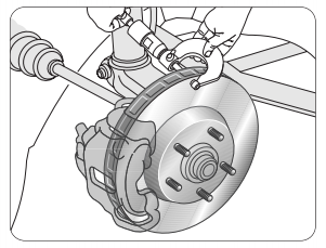 - Ao remover o disco, prenda o flexível de freio com ferramenta adequada – pode ser um gancho feito de arame resistente. Isso impede que o flexível fique pendurado, evitando danos e vazamentos.