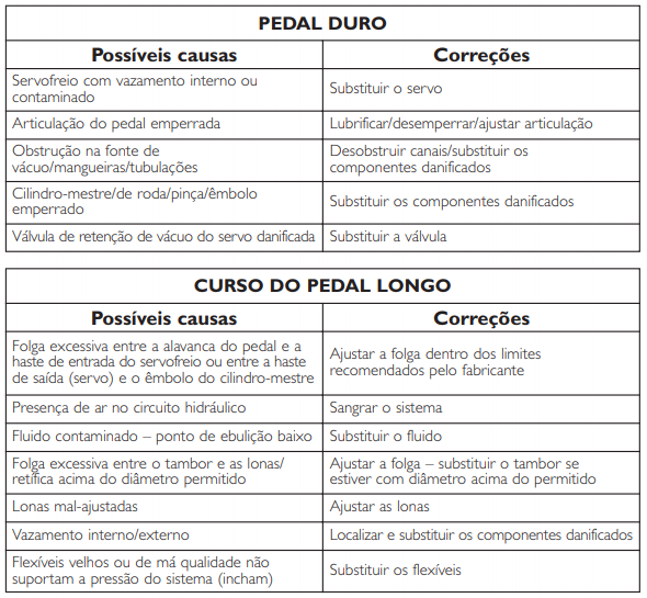 Quando o servo apresenta algum problema o pedal de freio se torna muito duro como o motor em funcionamento; o motor morre ou altera a rotação; ou um assopro constante é ouvido. Esses sintomas podem estar relacionados a entupimento na mangueira de vácuo, falha na válvula de retenção ou rompimento do diafragma. Nesse último, uma das causas pode ser a contaminação pelo combustível.