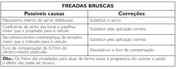 Após a substituição de pastilhas e lonas, os freios não devem solicitados bruscamente durante os primeiros 300 km (exceto em emergências).