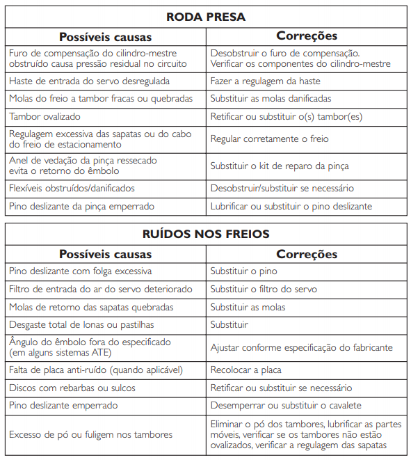 Tambores de freio devem ser substituídos sempre que atingirem o diâmetro máximo determinado pelo fabricante (gravado no tambor) ou quando apresentarem trincas, empenamento ou ovalização. Não observar essa regra poderá resultar em: