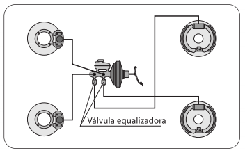 As válvulas equalizadoras geralmente estão montadas entre o cilindro-mestre e as linhas de freio traseira e dianteira. Sua função é regular a pressão hidráulica entre as rodas dianteiras e traseiras para evitar o travamento das rodas traseiras, que poderia descontrolar o veículo durante frenagens mais fortes. Esse travamento tende a ocorrer devido à transferência de massa do eixo traseiro para o eixo dianteiro durante as frenagens.
