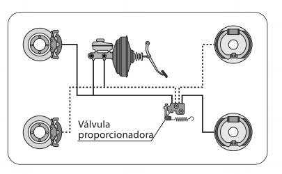 Já as válvulas proporcionadoras são utilizadas principalmente em veículos utilitários e peruas. Têm o mesmo princípio de funcionamento da válvula equalizadora, porém são sensíveis à carga. Se for necessário trocá-las, deverão ser ajustadas de acordo com os procedimentos específicos fornecidos pelo fabricante do veículo.